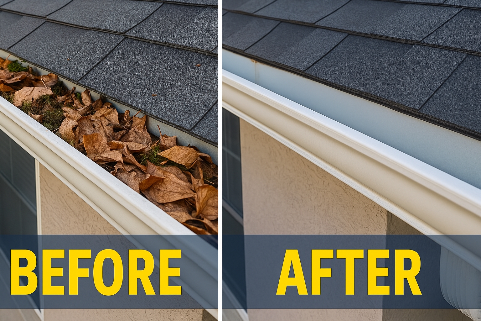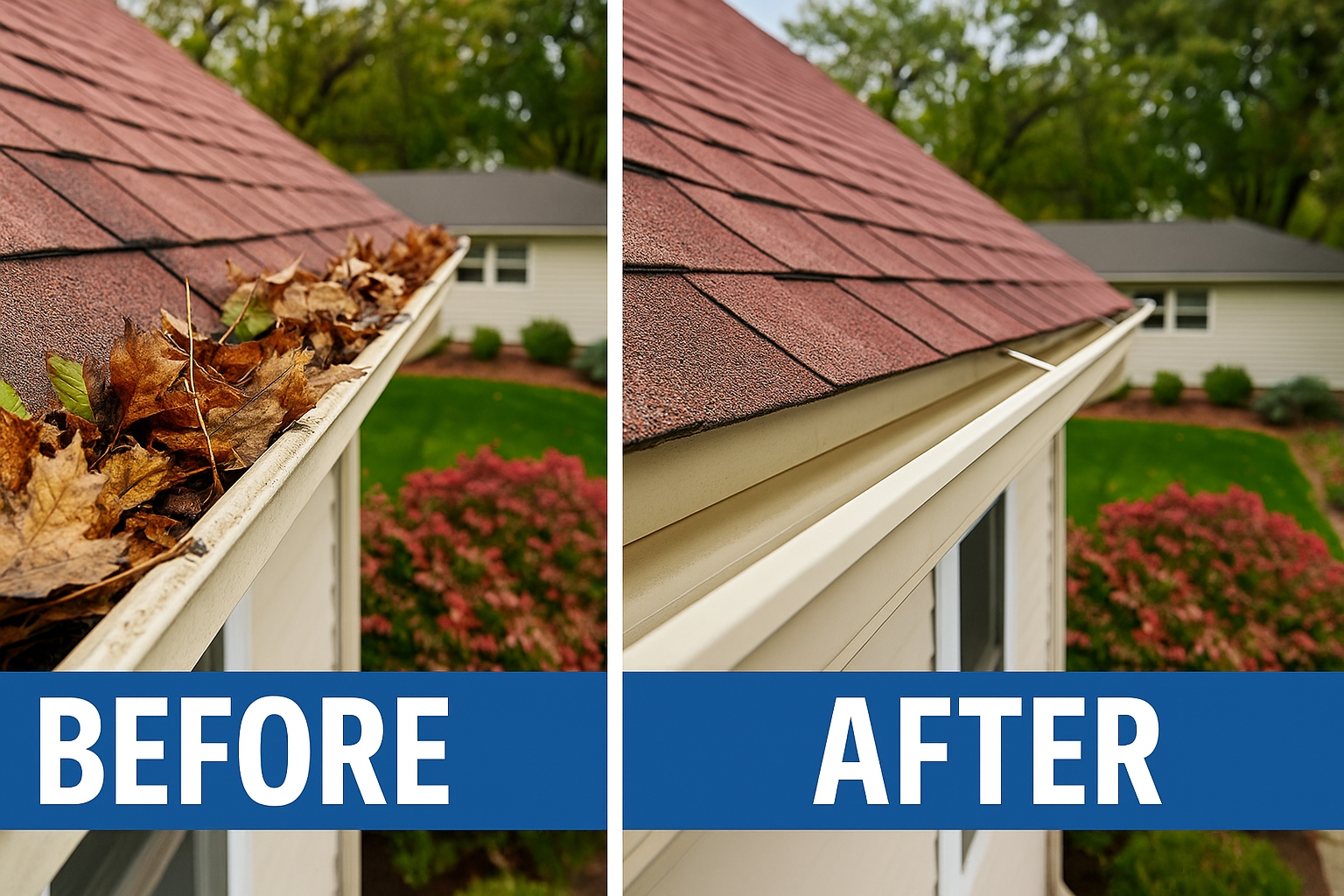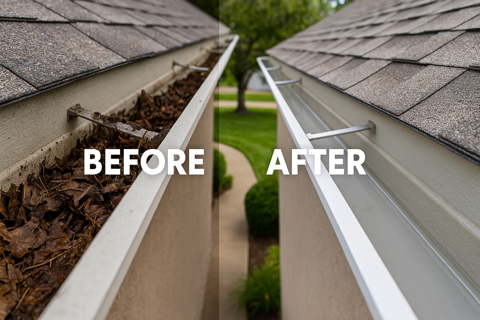 - Clean gutters stop water from backing up and damaging your roof, walls, and foundation.