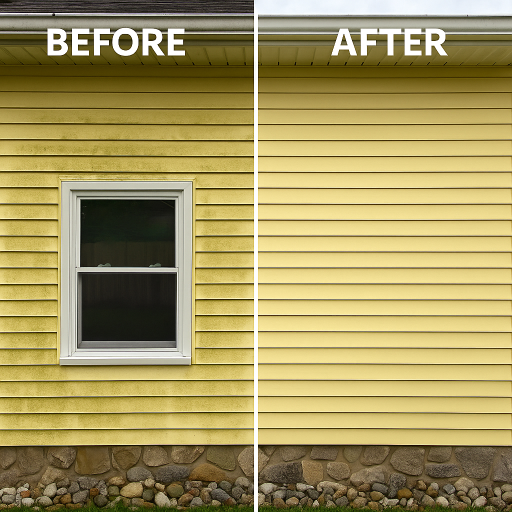 - We use low-pressure water and eco-safe solutions to clean siding, shingles, and painted surfaces without damage.